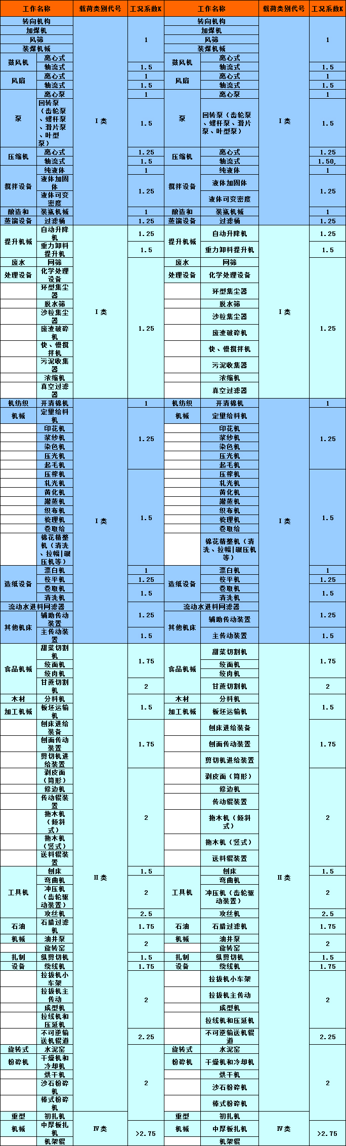 | 載荷分類 | 均勻載荷 | 中等沖擊載荷 | 重沖擊載荷 | 特重沖擊載荷 |