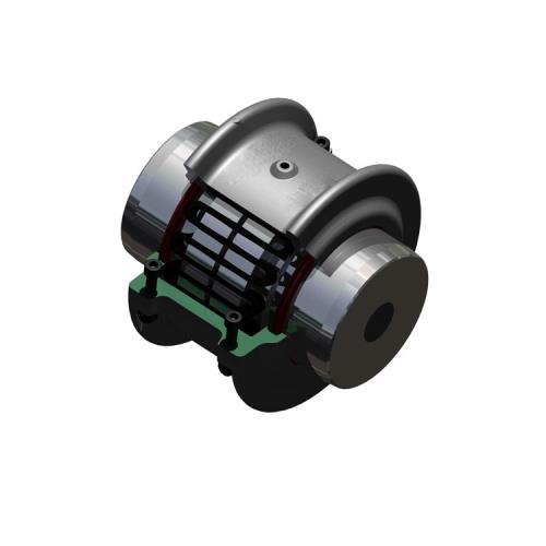 蛇簧聯軸器的結構緊湊、外形尺寸小,適用于連接兩同軸線的中、大功率的傳動軸系。具有補償兩軸相對偏移的減震、緩沖性能。工作溫度為-30℃-+150℃,傳遞公稱轉矩52-931000N.m.一般兩軸相對的許用位移量:軸向為4-20mm;徑向為0.5-3mm;角位移為1°15′。蛇簧聯軸器應用于各工業領域。